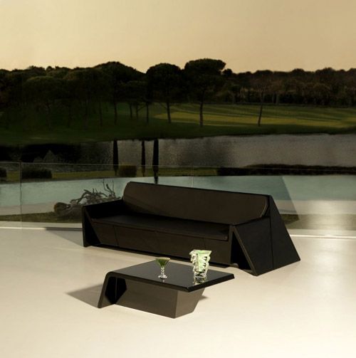 Divano da esterno in polietilene lucido monoscocca colorato in massa.