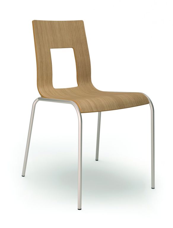 Sedia impilabile da interno in tubolare d’acciaio cromato, scocca in  multistrato laminato sagomato.
