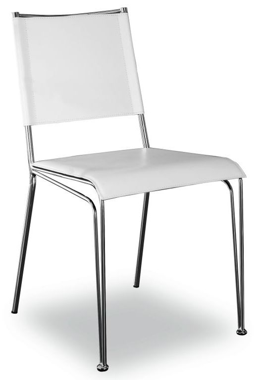 Sedia da interno con struttura d’acciaio cromato, con seduta e schienale in similpelle colorata. Seduta disponibile in multistrato.