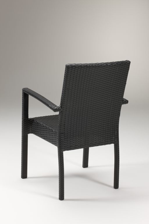 Poltrona impilabile da esterno con struttura in alluminio, rivestimento con intreccio in polietilene effetto Rattan