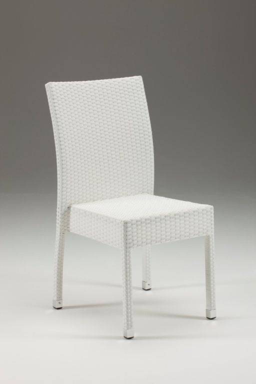 Sedia/Poltrona impilabile da esterno con struttura in alluminio, rivestimento con intreccio in polietilene effetto Rattan, tinta bianco.